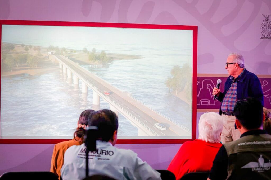 Durante su Conferencia Semanera realizada en Guasave, el gobernador de Sinaloa, Rubén Rocha Moya, confirmó que el puente que conectará Bella Vista, Boca del Río y Las Glorias avanza conforme a lo planeado y será concluido en diciembre de este año, tal como está previsto.