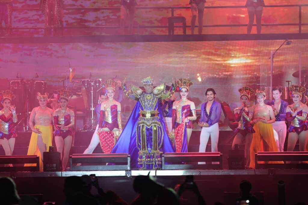 El espectáculo incluyó homenaje a Daniel Osuna por 25 años como Rey de la Alegría, y un show del Ballet Folclórico del Instituto Municipal de Cultura, con coreografías de Esaul Delgadillo, Pablo Navarrete y Javier Arcadia, coordinado por Zoila Fernández. Javier I estuvo acompañado por el Príncipe Guillermo, el Marqués Víctor y el Duque Romeo, ovacionados por el público. La noche cerró con el concierto de Edén Muñoz, que animó a miles de jóvenes.