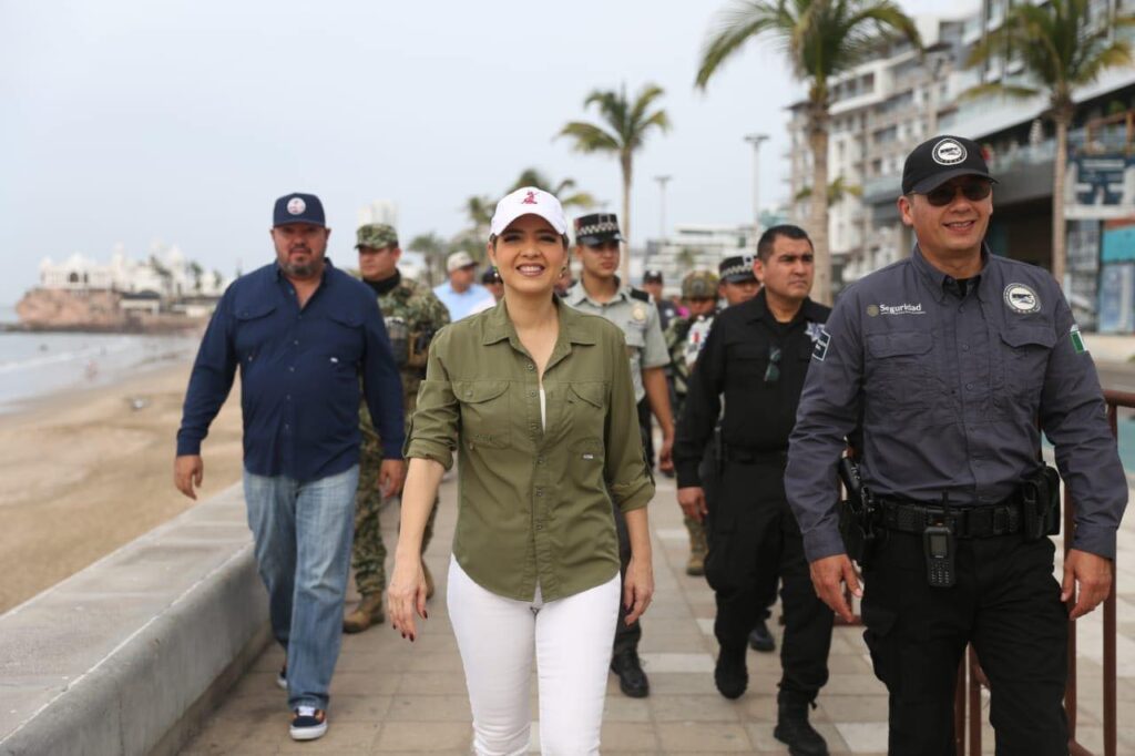 La presidenta municipal Estrella Palacios realizó un recorrido de supervisión por la avenida Del Mar para constatar los preparativos de la Gran Fiesta de Fin de Año en Mazatlán, acompañada por autoridades de seguridad y cuerpos de auxilio, con el objetivo de garantizar una celebración ordenada y segura para familias y visitantes.